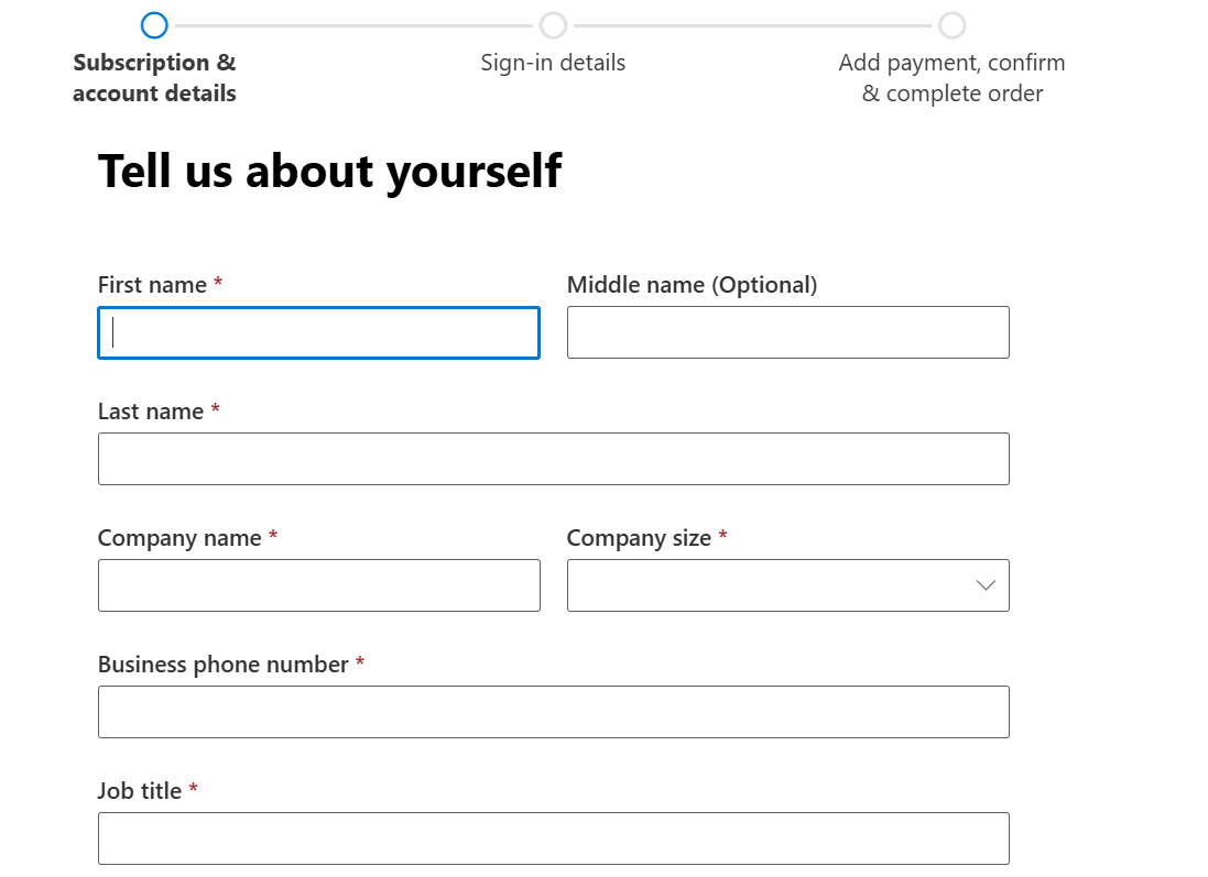 - Once you are done with entering the information about yourself and the company, you need to add the payment information.