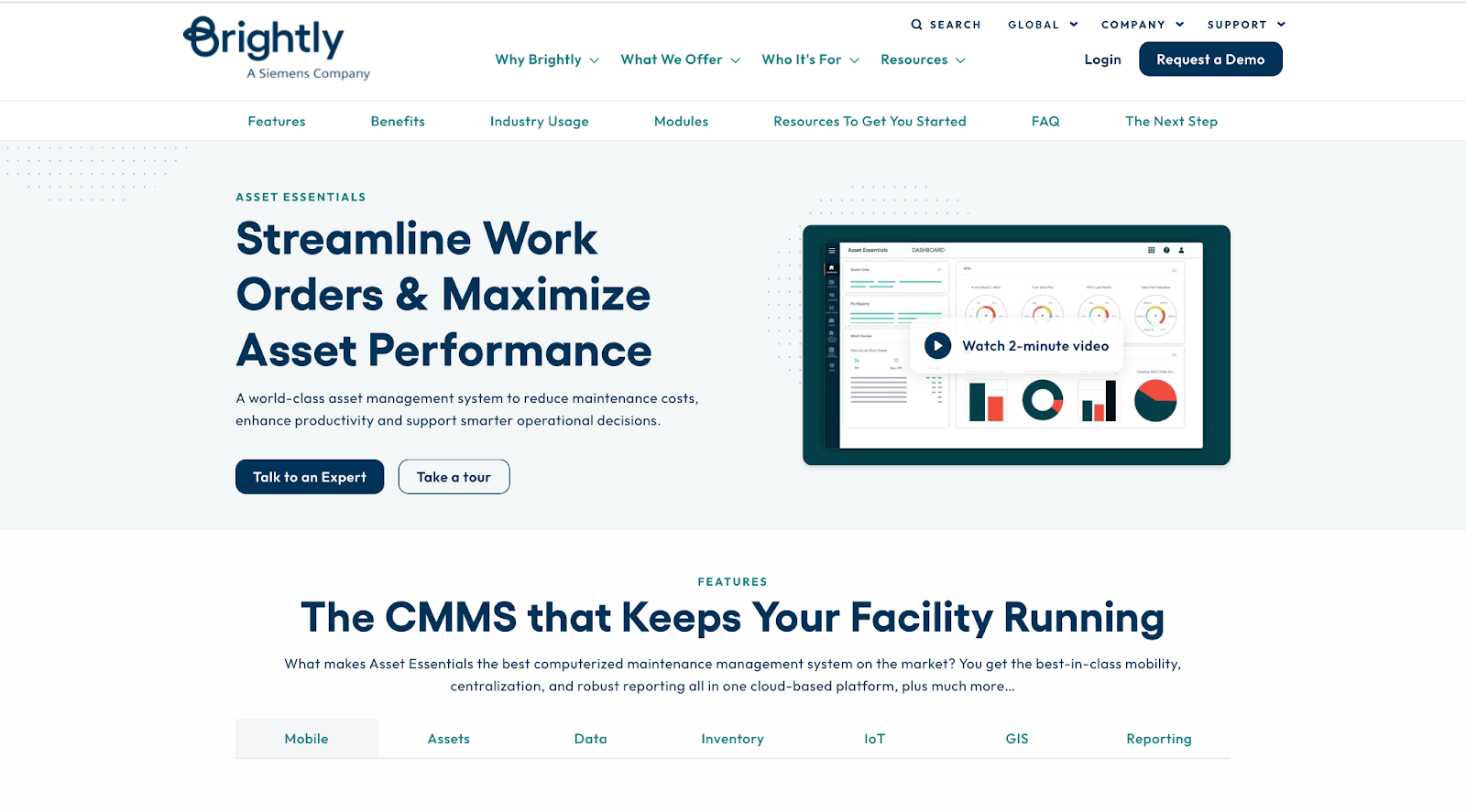 Brightly Asset Essentials is one of the best property maintenance software solutions built for facility teams that are upgrading their spreadsheets for a modern CMMS software with a mobile app. The platform allows teams to create work orders and assign technicians while maintaining detailed service histories for assets and equipment.
