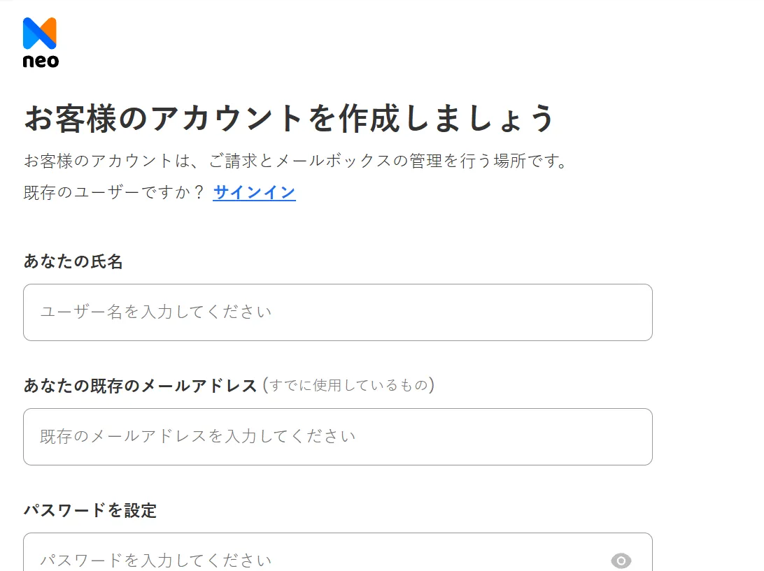 ステップ 4:Neo Mail のカスタマーアカウントを作成