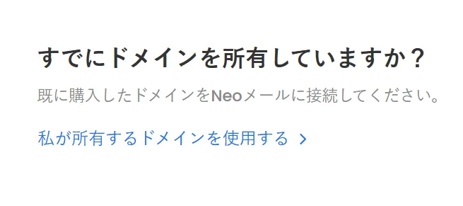 登録済みのドメイン名を入力すると、Neo Mail がすぐに所有権を確認します。